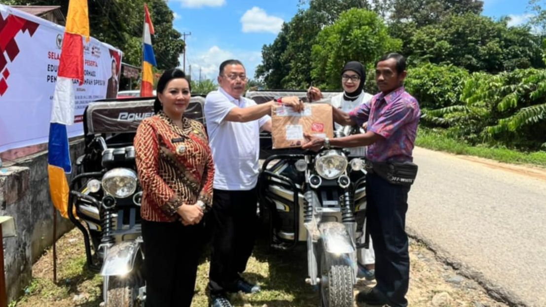 Anggota Komisi XII DPR RI, Cornelis, menyerahkan bantuan berbagai perlengkapan pengelolaan sampah dari Kementerian Lingkungan Hidup RI, sekaligus melakukan edukasi dan informasi pengelolaan sampah spesifik, di Kantor Desa Sidas, Kecamatan Sengah Temila, Kabupaten Landak pada Kamis, 9 Oktober 2025.